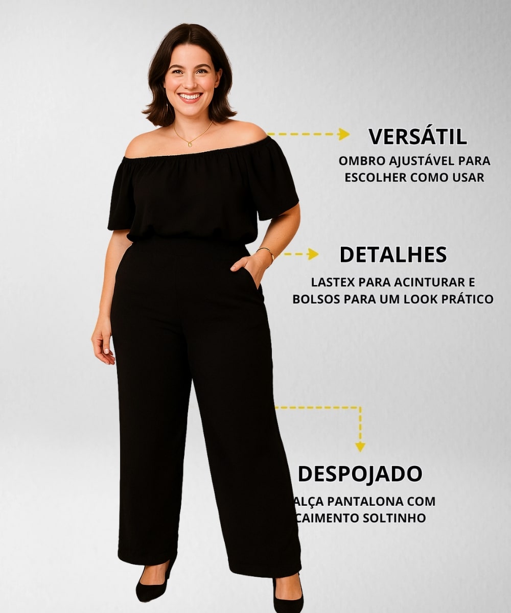 Os bolsos adicionam praticidade e estilo, tornando este macacão a escolha perfeita para mulheres que buscam um look elegante e funcional.
