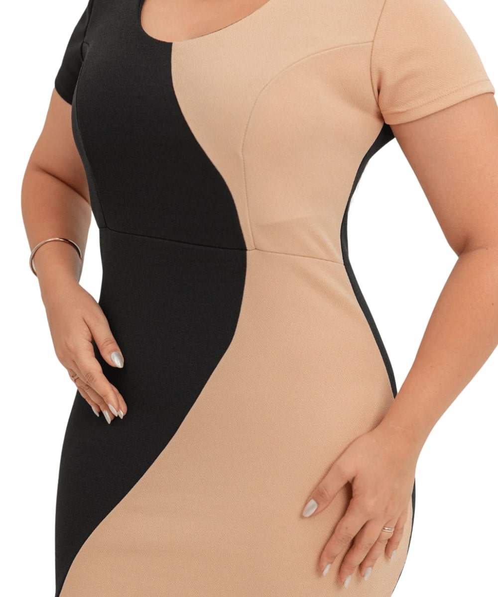 Posso usar esse vestido em eventos mais formais? Sim! O design bicolor e o corte midi fazem deste vestido uma ótima opção para eventos formais e semiformais.